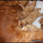 Wednesday, July 30th, 2008On Saturday the 26th July at 19.15 Bear went into labour, by 19.26 we had out first puppy. The next 3 were closely followed all easy births and healthy. After nearly an hours wait she produced her 5th and final puppy. Both bear and puppies are doing extremely well. Some puppies have white markings and a good deep colour.